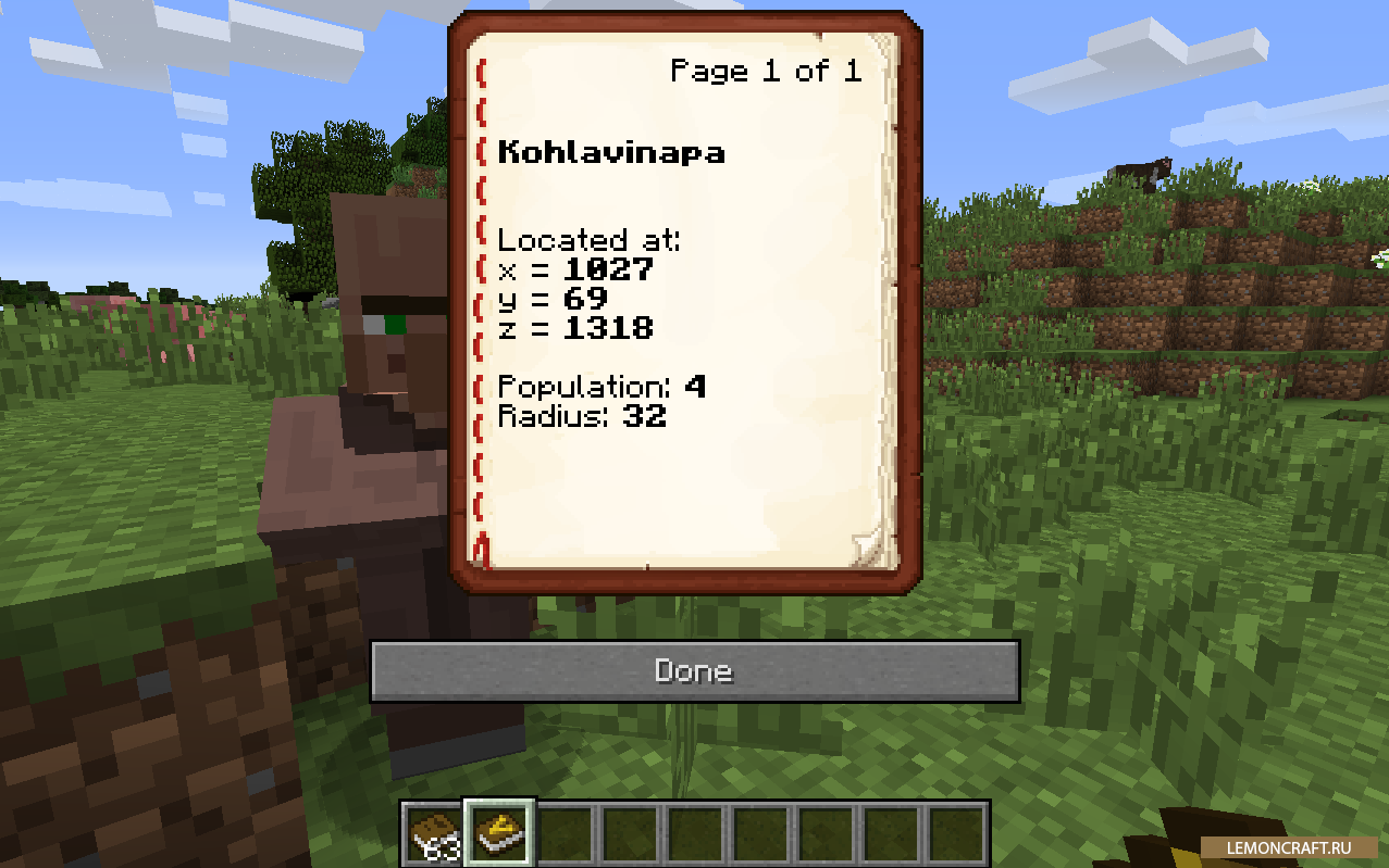 Мод Village Names позволит добавлять имена таким структурам, как заброшенные шахты, деревни, крепости. Кроме этого все жители деревень тоже получат имена. Кроме имен каждый житель получит свою специализацию. В итоге в игре появится больше реализма, да и играть станет приятно.